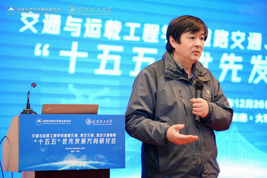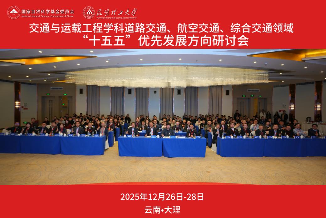 2025年12月26日至28日,“交通与运载工程学科道路交通、航空交通、综合交通领域‘十五五’优先发展方向研讨会”在云南大理成功举办。本次研讨会由国家自然科学基金委员会工程与材料科学部交通与运载工程学科指导,昆明理工大学主办,东南大学、同济大学、南京航空航天大学、长安大学、清华大学、北京航空航天大学协办。 昆明理工大学党委常委、副校长蒋业华教授代表学校致辞,国家自然科学基金委交通与运载工程学科主任王之中就学科发展及相关工作进行了指导。