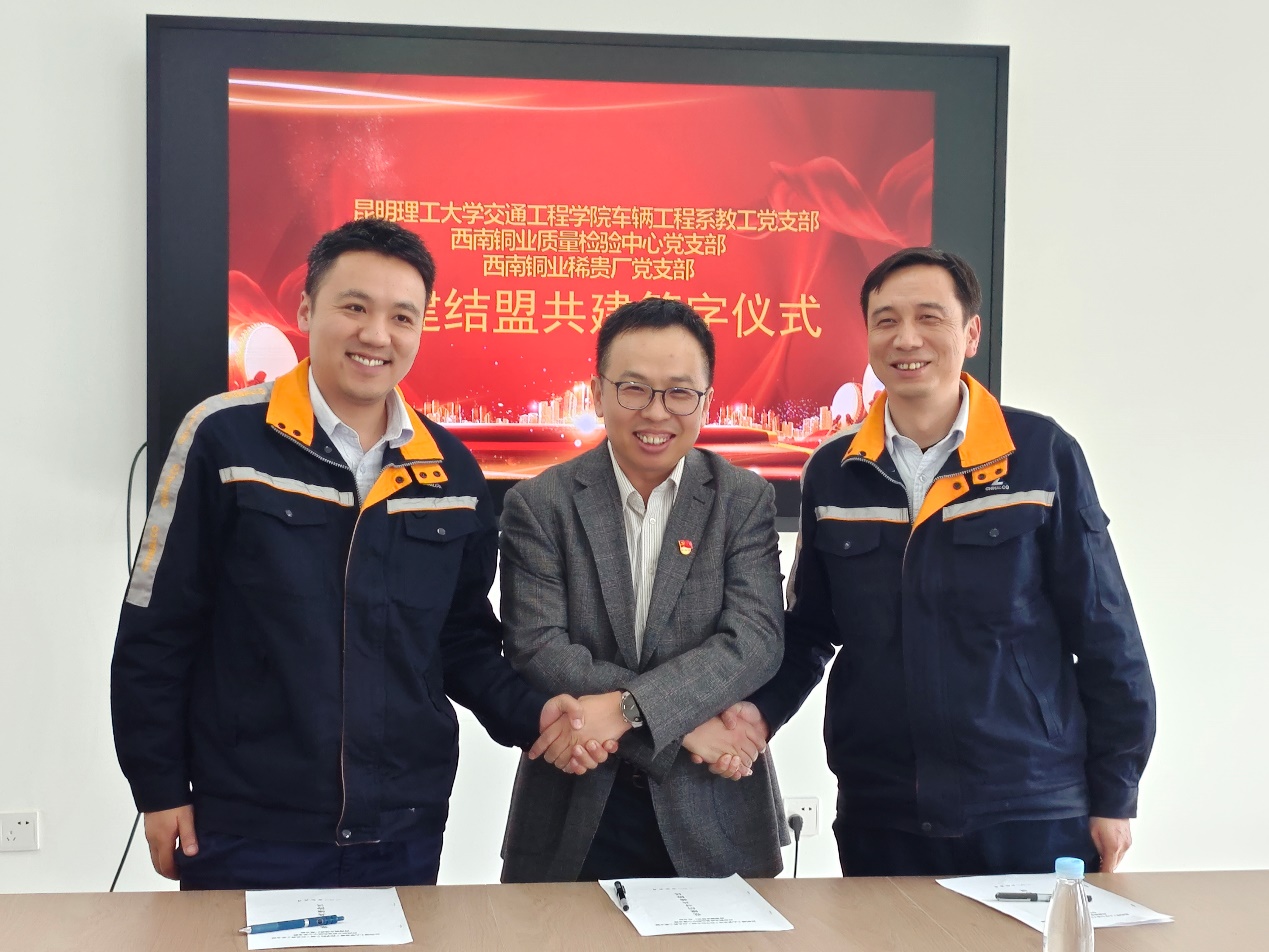 2025年5月30日,学院车辆工程系教工党支部与西南铜业质量检验中心党支部、西南铜业稀贵厂党支部在云南铜业股份有限公司西南铜业分公司开展党建结盟共建活动。学院党委书记张强、副院长陈贵升、车辆工程系教工党支部部分党员教师代表参加活动。