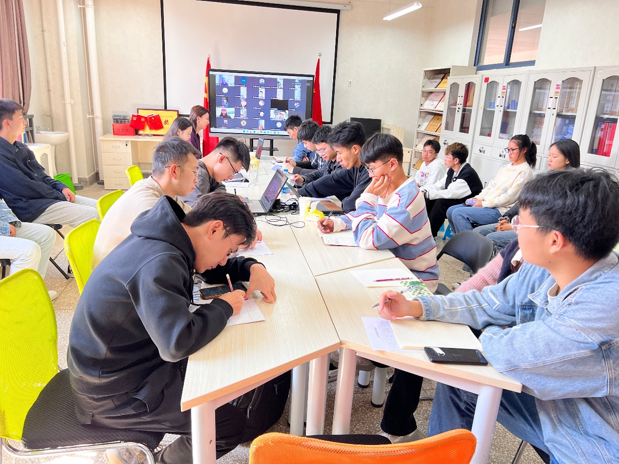 团员青年开展“学习贯彻党的二十大精神”思想政治教育,会议由院团委书记赵云瑶主持,团学组织负责人、团支书共80余人参加。