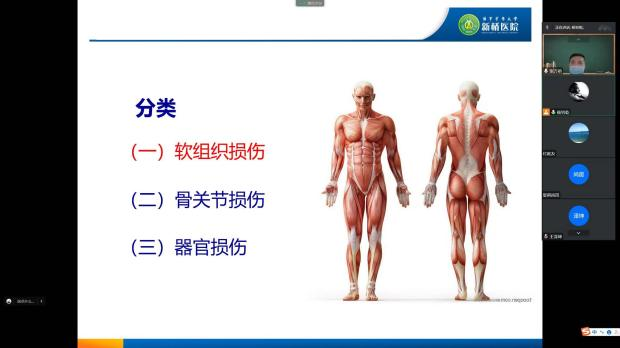 讲座开始,张万前博士用通俗易懂的语言深入浅出的科普了运动损伤的知识,帮助同学们对什么是运动损伤以及运动损伤的主要分类有了一个初步的认识。张博士通过播放运动损伤的经典视频案例,进一步帮助同学们更加直观的感受到错误的运动给身体带来的伤害。最后,他向参会人员科普了一些常见的运动损伤急救知识,他强调,学好运动损伤的急救知识是非常有必要的,特别是对经常使用的半月板、肘关节、肩关节等部位的运动损伤急救。