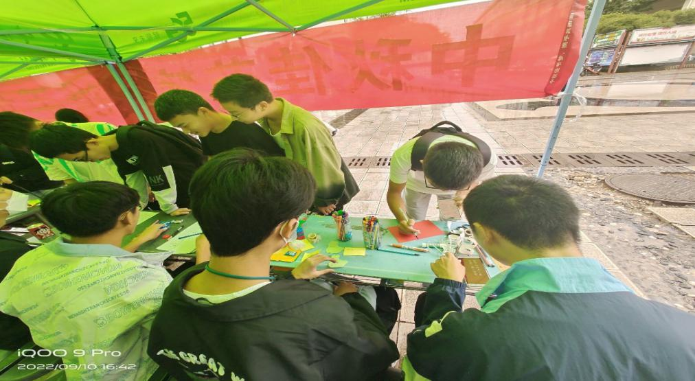 青年志愿者协会组织了以“中秋佳节梦,携手共团圆”为主题的一系列活动。本次活动于怡园小广场举行,全校约400位同学参与了本次活动。