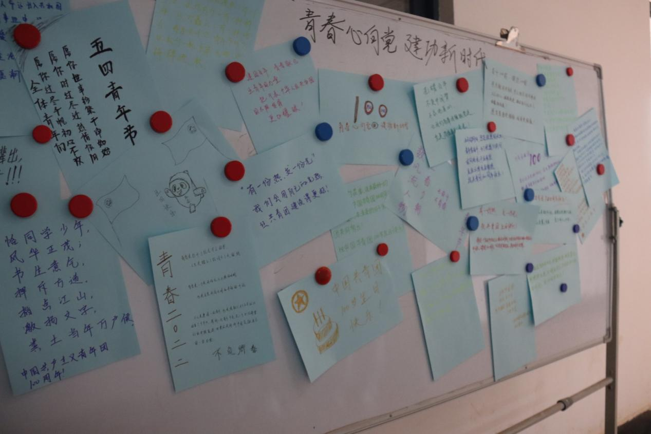 活动第一阶段,奏唱团歌,院团委负责人赵云瑶带领团员青年重温入团誓词,重忆入团初心。第二阶段,院团委老师领学了习近平总书记在中国人民大学考察时的重要讲话精神并分享了自己的感悟。第三阶段,团员青年们观看了由共青团中央主办的“青春心向党,建功新时代”五四主题网络直播,并通过绘画和书写寄语的方式,为共青团送上了生日祝福。