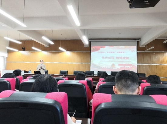 党委于10月31日在交通楼A座402报告厅开展“‘不忘初心、牢记使命’主题教育——新中国成立七十周年的伟大成就及历史启示”的专题党课。此次党课由晁洁同志主讲,全体学生党员及入党积极分子参加。