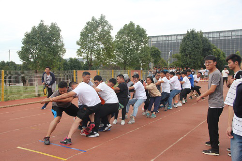参加拔河的所有同学在交通院学生会体育部的带领下准时到怡园体育场集合检录。接下来,交通院所有拔河运动员站到比赛场地,互相鼓励,讨论战术。紧接着,在紧张的气氛下,随着裁判的哨声响起,场上交通院和建工院的同学使出浑身解数,尽心尽力,以一种必胜的心态开始了比赛,旁边拉拉队加油声不断。炸金花平台