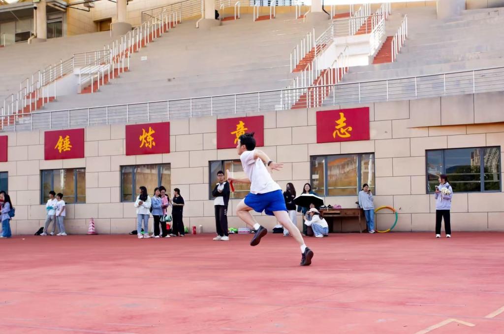 在100m、200m、跳远、铅球、引体向上、平板支撑等多个单人项目以及4*100、4*400等团体项目中,同学们展现出出色的竞技水平和顽强的拼搏精神。青春在一次次咬紧牙关的坚持与绝不服输的较劲中绽放出耀眼的光彩。