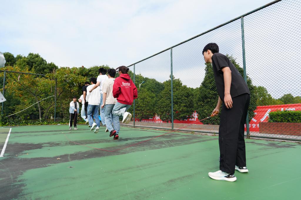同甘共苦、连环接力踢毽子、八人九足、集体跳长绳四项充满趣味与挑战性的项目得到了同学们的积极响应和热情参与,大家在比赛中团结协作,相互激励,21支参赛队伍不仅在比赛中收获了运动的乐趣,更增进了同窗情谊。