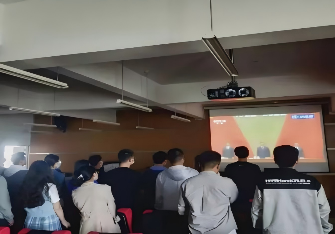 此次活动共分为三个阶段。第一阶段,收听收看庆祝中国共产主义青年团成立100周年大会。随着大会进行,全院青年师生奏唱国歌,回顾共青团听党指挥为党奋斗的百年历史,学习习近平总书记对中国共产主义青年团工作的重要论述。