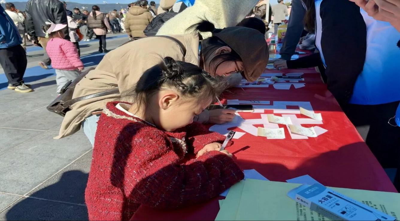 此次活动在周末开展,慕名来到海埂大坝观鸥的游客络绎不绝。学院青年志愿者协会参加活动的志愿者们化身海鸥卫士和环保知识宣传员,通过发放宣传单、开展趣味知识问答等形式,将海鸥生活习性、迁徙奥秘、保护生态环境的重要意义等环保知识传递给每一位参与活动的市民和游客,呼吁大家携手守护这些远道而来的“白色小精灵”。小朋友们在志愿者的带领下用画笔描绘出心中最可爱的海鸥,市民和游客踊跃参与爱鸥护鸥和环保知识问答,大家纷纷在“与鸥和谐共生”的横幅上签名承诺,共同守护关爱海鸥、保护生态环境。